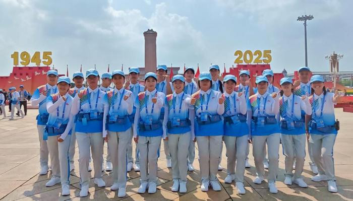 9月3日,纪念中国人民抗日战争暨世界反法西斯战争胜利80周年大会在天安门广场隆重举行。北京青年报记者了解到,大会志愿者服装及配套物资是由北京印刷学院设计的。服装设计上有八路军军装领型等元素,腰包也采用八路军军服的抗战灰蓝,让志愿者团体形成犹如军队列队般英姿飒爽的气势。